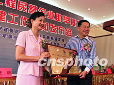 中新社廣州五月三十一日電(王華鄧劍平)廣東民營企業(yè)致富先助學,向希望工程捐款設立專項助學基金。今天下午,廣州富力地產集團率先向希望工程捐贈一千五百萬元人民幣,設立希望工程民營企業(yè)助學基金的首個專項命名基金。