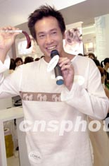 影視紅星陳豪6月5日在香港出席法國(guó)化妝品牌「萊莉雅」專門店開幕儀式,陳豪于店內(nèi)找到合適的染發(fā)色樣。 中新社記者 鄧慶樂