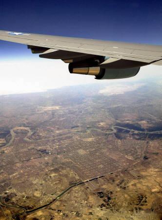 中新網6月6日電 美國總統(tǒng)布什月5日在搭乘專機“空軍一號”從卡塔爾返回華盛頓的途中,飛越伊拉克首都巴格達上空。