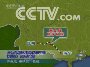 中新網(wǎng)6月10日電 由于連日普降大到暴雨,南昆鐵路部分路段出現(xiàn)泥石流、水淹鋼軌等災(zāi)害,造成南昆線(xiàn)從昨天開(kāi)始中斷行車(chē)。目前,鐵路部門(mén)正組織人員進(jìn)行搶修。