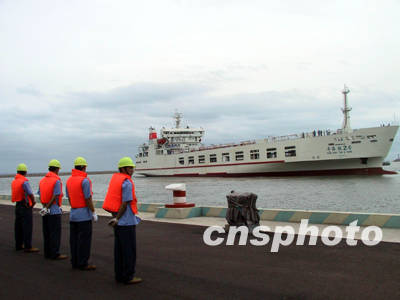 中新網(wǎng)?诹率娜针 題:“粵海鐵二號(hào)”順利抵達(dá)海南島