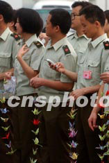 北京市六月二十二日集會歡送抗擊非典的解放軍醫(yī)療隊,完成小湯山醫(yī)治任務的三軍白衣戰(zhàn)士換上戎裝準備班師。中新社記者:賈國榮