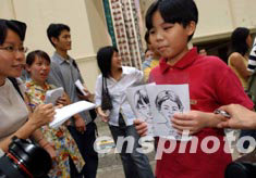 世界衛(wèi)生組織6月23日將香港剔除出疫區(qū),淘大花園的小朋友興奮地向記者展示漫畫,準(zhǔn)備送給特首董建華以示謝意。中新社記者 洪少葵