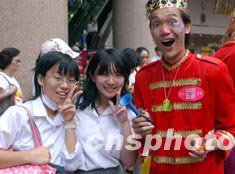 圖為學(xué)生與小丑一起歡慶香港疫區(qū)除名。