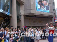 香港時(shí)代廣場大屏幕播放新聞后,市民歡欣鼓舞。