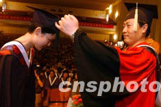河南中醫(yī)學院二十六日舉行大學生畢業(yè)儀式!胺堑洹敝螅嗅t(yī)藥在海內(nèi)外受到青睞,該院畢業(yè)生也成了就業(yè)市場上的“新寵”。作者:慎重