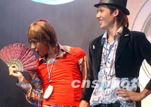 香港樂壇人氣偶像BOYZ,六月二十五日晚在諾基亞香港舉行的產(chǎn)品發(fā)布會上,擔(dān)任諾基亞3300宣傳大使。 中新社記者 錢興強