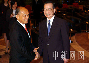 圖:國(guó)務(wù)院總理溫家寶與霍英東交談