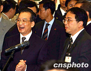 六月三十日,國務(wù)院總理溫家寶參觀香港大學(xué)醫(yī)學(xué)院,并與教授們談笑。中新社記者 潘索菲 攝