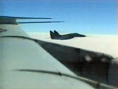 在五角大樓公布的錄像帶中,人們可以看到一名朝鮮戰(zhàn)斗機(jī)飛行員在他的座艙內(nèi)打手勢,顯然是要求美軍偵察機(jī)離開這一空域。