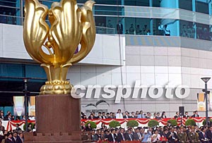慶祝香港回歸祖國(guó)六周年的升旗禮,7月1日早上在香港灣仔金紫荊廣場(chǎng)舉行,整個(gè)升旗儀式簡(jiǎn)短而莊重。中新社記者 錢興強(qiáng) 攝