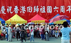 香港慶;貧w六周年在維園舉辦大型慶祝活動(dòng),吸引眾多市民頭頂烈日參與嘉年華場(chǎng)內(nèi)游戲活動(dòng)。洪少葵 攝