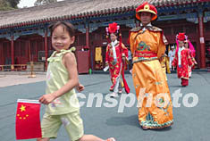 身穿清代服裝的游客七月四日在北京故宮午門(mén)前準(zhǔn)備拍照。隨著北京故宮旅游的逐漸復(fù)蘇,受非典影響停業(yè)兩個(gè)多月的古裝攝影也開(kāi)始恢復(fù)營(yíng)業(yè)。中新社記者 張煒 攝