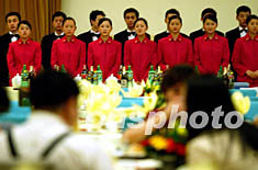 中新網(wǎng)7月5日電 據(jù)北京娛樂信報報道,昨晚6時30分,人民大會堂三樓大宴會廳燈火輝煌,“雙解除”后來京的549名境外游客受到北京市旅游局的“國宴”招待。