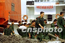 搶險(xiǎn)現(xiàn)場,原先歪歪斜斜的兩幢建筑物已徹底消失,而剩下的那幢八層樓房也已拆除過半。建筑物廢墟清理進(jìn)展十分迅速,昨日澆筑起的半個(gè)足球場大的水泥地,今天已延伸近臨江花園大廈的北側(cè)圍墻邊,平坦的水泥地為大型工程車及搶險(xiǎn)設(shè)備進(jìn)出現(xiàn)場提供了極大的便利。記者看到,有運(yùn)輸卡車停在水泥地的一側(cè),直接把車上泥沙倒卸在施工現(xiàn)場。據(jù)卡車司機(jī)介紹,他每天要運(yùn)送二百噸左右的水泥,他們公司共有二十多名司機(jī)在此待命,另外還有多家運(yùn)輸隊(duì)伍共同參與此項(xiàng)工作。