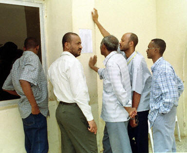 蘇丹航空公司的一架波音737客機8日凌晨4時(當?shù)貢r間)在蘇丹港機場附近墜毀,除一名兩歲兒童幸存外,機上其余105名乘客和11名機組人員喪生。圖為遇難航班旅客的親屬在蘇丹航空公司查看遇難者名單。