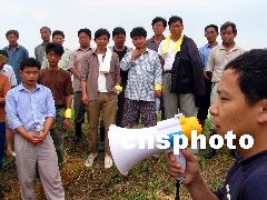 7月9日,蚌埠水利設(shè)計(jì)院專家許曉松來到行洪口大堤,為防汛隊(duì)員講解護(hù)堤應(yīng)注意的技術(shù)問題,不讓洪水輕易入侵行洪區(qū)3.8萬人的家園;春影霾憾位吹剃愖幼煨泻榭陂L1500米,在淮河更大的洪峰到來時,將在該行洪口炸壩泄洪,以確保城區(qū)安全。劉兵生 攝