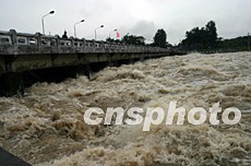 七月十一日凌晨,為了減輕淮河連日降雨給淮河干堤帶來(lái)的巨大防洪壓力,安徽阜陽(yáng)王家壩進(jìn)水閘繼七月三日后再度開(kāi)啟。中新社記者:盛佳鵬  淮南淮河大橋的交通仍然正常運(yùn)行,未受太大影響。中新社記者:盛佳鵬
