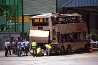 據(jù)香港大公報(bào)報(bào)道,出事九巴殘骸于前日下午已被運(yùn)至大嶼山車(chē)輛扣留中心,并于昨日交由警方﹑運(yùn)輸署及九巴公司聯(lián)手進(jìn)行檢查。