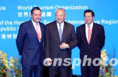 香港特首董建華(中),7月14日在會(huì)展中心與博鰲亞洲論壇秘書長龍永圖(右)及世界旅游組織秘書長弗朗加利主持“重振亞洲旅游業(yè)會(huì)議”開幕禮。中新社記者:洪少葵
