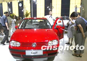 中國(guó)一汽-大眾新生產(chǎn)的世界經(jīng)典兩廂高爾夫轎車(chē)15日亮相第三屆中國(guó)長(zhǎng)春汽車(chē)博覽會(huì),其發(fā)動(dòng)機(jī)排量有1.6、1.8、2.0三種,售價(jià)在15萬(wàn)至18.5萬(wàn)元人民幣,受到消費(fèi)者的關(guān)注。中新社記者:趙振清