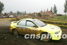 2003年中國(guó)汽車?yán)愰L(zhǎng)春站比賽經(jīng)過(guò)兩天的激烈爭(zhēng)奪17日全部結(jié)束,來(lái)自北京慶洋車隊(duì)的任志國(guó)(右)、和領(lǐng)行員潘劍獲得N2組比賽冠軍。中新社記者:趙振清