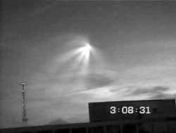 不過,不管怎么說,俄軍方要求天文愛好者把拍到的錄像給他們看看,結(jié)果斷定確實是二級火箭分離時的情景。至此,在全世界都鬧得沸沸揚揚的鄂木斯克城UFO之謎真像大白。圖為當時拍的奇異情景(徐冰川/聞新芳)
