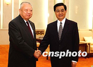 中新社北京七月十九日電 中國國家主席胡錦濤、中國國家副主席曾慶紅今天下午在人民大會堂會見了赴京述職的香港特別行政區(qū)行政長官董建華。陪同會見的還有全國政協(xié)副主席、國務院港澳辦主任廖暉、中共中央書記處書記、辦公廳主任王剛。