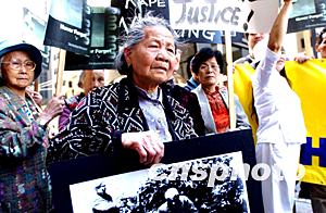 七月十八日,美國舊金山日本侵華浩劫紀(jì)念館舉行“為正義而呼喚!為史實而抗議!”的示威游行,百余名華人前往日本駐舊金山領(lǐng)事館遞交抗議書,要求日本承認(rèn)“對華侵略”,真心悔改,“向中國人民謝罪道歉”,對受害者“作出公平的賠償”。作者:陳鋼