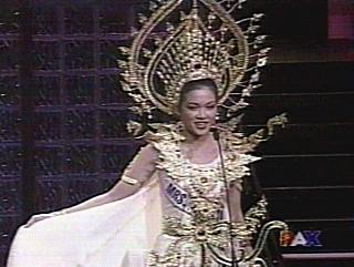 來自全球39位佳麗齊聚美國拉斯維加斯,為爭取2003年世界太太的桂冠使出混身解數(shù)。來自泰國的蘇珊娜在機智問答中,以沉著穩(wěn)重的氣度舒展大將之風(fēng),她被問到的題目是為什么希望成為世界太太。她回答:“因為我知道戴上了皇冠就付予我舒展現(xiàn)代女子的能力,無論在泰國、美國、或任何地方,舒展出我們高貴有教養(yǎng),有能力,并舒展我們很愛家人的道德!背藱C智問答贏得評審注意,蘇珊娜在才藝表演中,以烹調(diào)色香味俱全的泰國料理吸引評審。最后她在38名佳麗中脫穎而出,戴上桂冠。