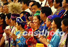 中國(guó)共青團(tuán)第十五次全國(guó)代表大會(huì)二十二日在北京開幕,身著艷麗服飾的少數(shù)民族代表成為會(huì)場(chǎng)上靚麗的風(fēng)景。中新社記者:滿會(huì)喬
