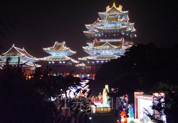 閱江樓位于獅子山上,瀕臨長(zhǎng)江,樓高52米,明四暗三共七層,氣勢(shì)恢宏,為長(zhǎng)江第一高樓。夜晚登臨其上,清風(fēng)徐來,近處可觀賞大明雄風(fēng)主題燈展,舉目眺望,既可盡覽大江風(fēng)光,又可欣賞古城美景。聯(lián)想起當(dāng)年朱元璋、鄭和等人物的風(fēng)采,更是引人入勝。