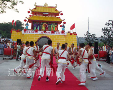 中新江蘇網(wǎng)7月24日電(記者丁東升 實(shí)習(xí)記者胡祥麟 通訊員孫愛華)昨晚,數(shù)千市民扶老攜幼歡聚南京獅子山公園廣場(chǎng),觀賞在此舉行的“閱江樓·大明雄風(fēng)”主題燈展開幕式。當(dāng)晚7點(diǎn),在獅子山的東廣場(chǎng)伴隨著腰鼓隊(duì)的一段精彩演出,為期四個(gè)月的燈展正式拉開帷幕。盡管天氣悶熱,但仍擋不住絡(luò)繹不絕的群眾的熱情,整個(gè)東廣場(chǎng)被擠了個(gè)里三層外三層。
