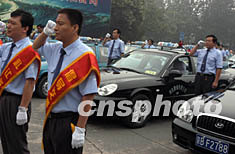 由北京市公安局公安交通管理局等主辦的首汽股份“倡導(dǎo)交通文明,禮讓斑馬線”活動(dòng)啟動(dòng)儀式,七月二十四日舉行,儀式上部分司機(jī)代表宣誓。中新社記者:任海霞