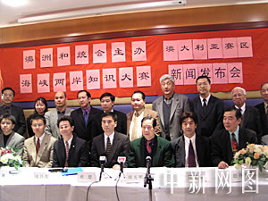 澳洲中國和平統(tǒng)一促進會24日舉行新聞發(fā)布會,宣布"第二屆海峽兩岸知識大賽"澳大利亞賽區(qū)預賽將于八月二十四日在悉尼舉行。參賽的有來自悉尼大學,新南威爾士大學,麥覺理大學,悉尼科技大學和臥龍崗大學五支大學生代表隊以及一支全部由學習中文的西人組成的代表隊。冠軍隊將代表澳大利亞賽區(qū)前往中國參加復賽和決賽。