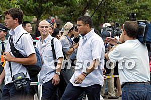 正是這短短的七十米距離給了記者近距離接觸巨星們的機(jī)會。貝克漢姆下車后引起了現(xiàn)場陣陣騷動,現(xiàn)場的攝影記者已經(jīng)全然不顧保安的阻攔,抓住機(jī)會一陣狂拍,而貝克漢姆也十分配合,一直報(bào)以微笑。只是在其身邊的保安阻攔之下,貝克漢姆沒有接受記者的采訪。