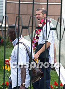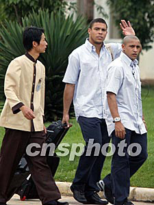 隨后下車的羅納爾多、齊達(dá)內(nèi)、菲戈、勞爾等巨星的號召力顯然不如剛剛加盟皇馬的貝克漢姆,圍在身邊的記者要少許多。趁此之機(jī),本社記者在第一時(shí)間采訪了菲戈,菲戈告訴記者,這是他第一次到中國大陸,感覺很不錯。