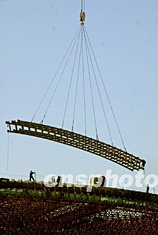 七月底,中國國家大劇院施工工程進入殼體結構安裝階段,六百噸巨型履帶吊車通過遠距離作業(yè),用長達一百零八米的“釣線”以“空中釣魚”的方式將一塊塊長三十五米的鋼組合梁送到四、五十米的高空,組成鋼結構穹頂。中新社記者:廖文靜