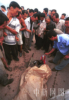 圖:辛集爆炸煙花廠遇難者親屬辨認遺體