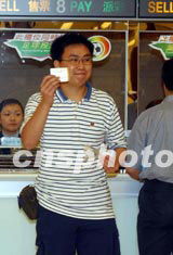 圖為市民黃先生是首位購(gòu)得足球博彩票的香港市民。