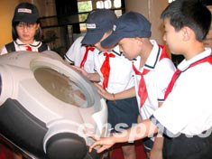 八月一日,宋慶齡基金會(huì)、全國(guó)少工委聯(lián)合瑞士斯沃琪公司向北京市部分中小學(xué)和校外教育單位捐贈(zèng)一批寓意深刻的禮物——著名的瑞士斯沃琪鐘表。以表示對(duì)中國(guó)教育事業(yè)的鼎力支持和對(duì)廣大少年兒童的真切關(guān)愛。圖為小學(xué)生們?cè)诰栀?zèng)儀式上興致勃勃地觀看富有科技魅力和時(shí)代氣息的鐘表。中新社記者:張勤