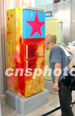 八月初周末在北京王府井新天地商場(chǎng)里,十幾臺(tái)涂滿油彩的彩繪個(gè)性冰箱吸引許多人的關(guān)注。中新社記者:杜洋