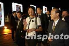 紀(jì)政等臺灣嘉賓出席北京奧運會徽發(fā)布儀式。