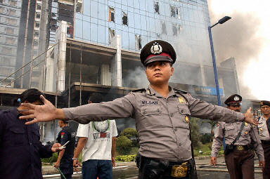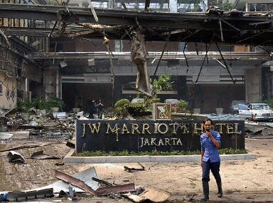 印尼首都雅加達南部的中心商業(yè)區(qū)附近的一家飯店發(fā)生劇烈爆炸。周圍幾幢建筑也受到爆炸沖擊。目擊者說至少有四具尸體被抬出現(xiàn)場。警方確認(rèn)已有5人在爆炸中死亡,另有5人重傷。