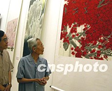 中國(guó)美術(shù)館重新開(kāi)館半月以來(lái),許多著名畫家來(lái)此參觀和交流。圖為繪畫大師吳冠中觀看館藏精品展。中新社記者:張勤