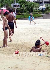 香港天文臺在10日早上發(fā)出酷熱天氣警告,并預測最高氣溫約33度,但淺水灣的溫度顯示牌在中午時份,曾打出35度高溫。作者:譚達明