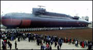 中新網(wǎng)8月10日電 俄羅斯《消息報》8月8日報道說,近日,在俄羅斯白海海畔北德文斯克“北方機器制造企業(yè)”的船塢上,當(dāng)著俄羅斯海軍總司令弗拉基米爾.庫羅耶多夫的面,俄羅斯的一艘世界上絕無僅有的核潛艇順利地下水了!
