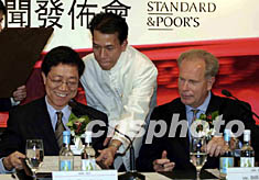 標(biāo)準(zhǔn)普爾投資服務(wù)和世華國(guó)際金融信息有限公司十二日宣布建立策略聯(lián)盟,為中國(guó)內(nèi)地投資與商界提供國(guó)際化信息服務(wù)。圖為“世華”董事長(zhǎng)趙良(左)和標(biāo)準(zhǔn)普爾亞太區(qū)董事總經(jīng)理利迪在新聞發(fā)布會(huì)上。作者:蕭紓昊