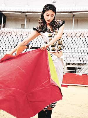 陳慧琳為拍攝全新廣東大碟《愛(ài)》的封套,特別遠(yuǎn)赴西班牙取景。其中一輯相在斗牛場(chǎng)內(nèi)拍攝,Kelly一身斗牛士造型十分搶鏡,與當(dāng)年劉嘉玲拍沐浴露廣告的斗牛造型十分相似。