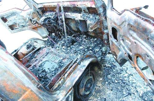 肇事的車子是0.6噸貨車,車上的擋風(fēng)玻璃已經(jīng)完全破碎,前兩輪胎處只剩下架子,方向盤只剩下圓形金屬,以及一把土制手槍、一把尖刀。值得一提的是,在車輛的殘骸上還有大量的塑料桶,有的是藍(lán)色,有的是白色,據(jù)一保安介紹,這些塑料桶是用來(lái)裝易燃液體的。昨天上午9時(shí)47分,一輛車身標(biāo)志是“刑事勘察車”的車輛駛?cè)氪逦瘯?huì)大院,從車上走下來(lái)數(shù)位警員,現(xiàn)場(chǎng)一共10多名警察不時(shí)交談著什么。最后警察將所有證物搬上車子后方離開。